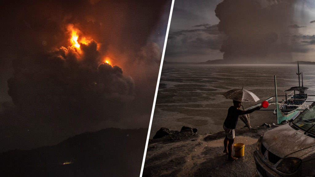 El volcán Taal en la provincia de Batangas, al sur de Manila, arrojó vapor, cenizas y pequeñas rocas entre 6 a 9 millas de altura, según el Instituto Filipino de Vulcanología y Sismología. Ello representa una dramática escalada de su creciente actividad que comenzó el año pasado.