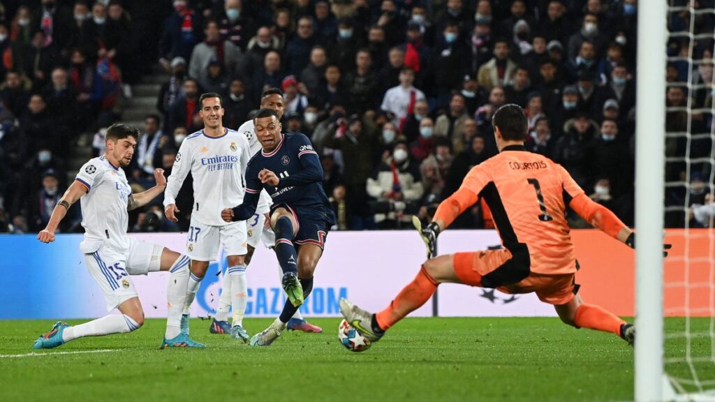 Mbappé aún juega en el PSG y se lo hizo pagar a un Madrid de perfil bajo, muy bajo, raquítico. Con todo, el Real, mandíbula apretada y sin una miradita a la portería contraria, resistió hasta que a 40 segundos del final Mbappé, un trueno, le condenó. Y con todo el mérito, porque no solo el delantero francés estuvo muy por encima de cualquiera, sino porque el PSG estuvo muchos escalones por encima de los de Ancelotti. De luces de neón va sobrado, pero esta vez nadie podrá reprochar a los de Pochettino su falta de alma. La ocasión lo requería y no hubo escapismos en el cuadro local, solo penalizado por la falta de puntería. De Messi, por ejemplo, al que los penaltis le resultan un martirio. Más si el reto es con Courtois, que no tiene brazos sino remos, sostén madridista en el Parque de los Príncipes junto a unos cuantos brigadas defensivos. Porque nada más tuvo el Real, solo dientes apretados, remangue y dedos cruzados.