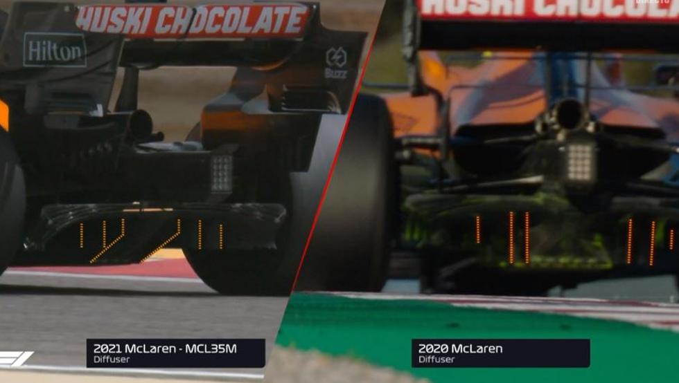 El difusor de McLaren de 2021, comparado con el que tenían en 2020