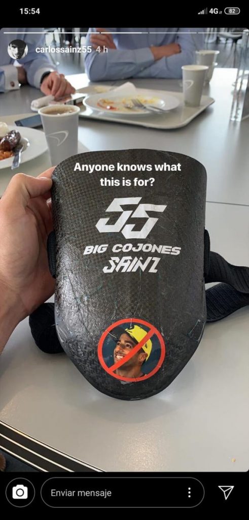 Daniel sorprendió a Carlos en pleno directo televisivo en ‘Movistar F1’ en la previa del GP de Gran Bretaña con un golpe bajo ante el que el español reaccionó con risas y la mejor de las venganzas, el haber defendido la sexta posición ante Daniel en las últimas vueltas de la carrera inglesa pese a tener un coche con menor ritmo que el Renault. “Mi huevo derecho me seguía doliendo durante las últimas diez vueltas”, escribió el español para seguir con la broma en un post de Instagram realizado tras la carrera para acabar con su venganza.