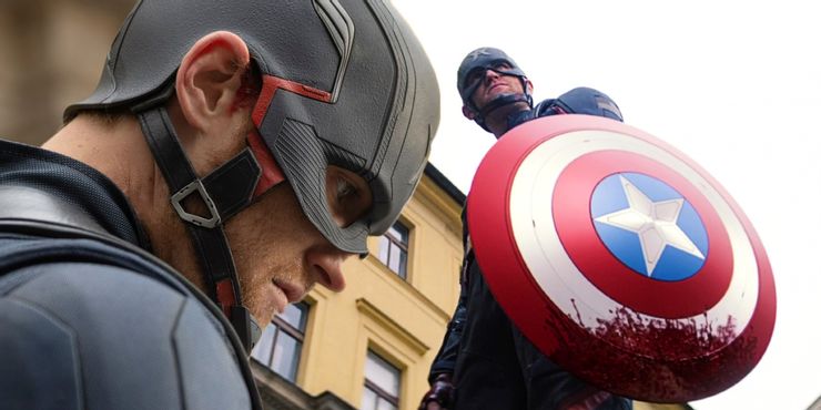 Rogers también comienza a usar su icónico escudo del Capitán América como arma, usándolo ofensivamente lanzándolo contra enemigos y defensivamente contra los disparos. Sin embargo, en comparación con el estilo de lucha que usa en futuras películas, sigue siendo rudimentario y sigue siendo la base de lo que aparecerá en la película. Soldado de Invierno.