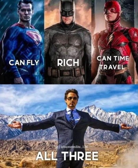 Podía volar como Superman con la ayuda de los rayos de repulsión que estaban en sus manos y pies. Era tan rico como Bruce Wayne, tenía varios autos lujosos como el Batimóvil y un asistente fiel (Jarvis o Friday) que también podría compararse con Alfred Pennyworth. También encontró una manera de viajar en el tiempo de manera eficiente.