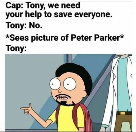 Stark tenía respeto por Parker y sus poderes, y es por eso que fue el primero en ayudarlo y guiarlo a través de la dura vida de un poderoso superhéroe. Diseñó un traje especialmente para él y fue el primero en regañarlo si hacía algo mal, tal como lo haría un padre. Por lo tanto, cuando Thanos desvaneció a Peter, Tony actuó como Morty y se unió al intento de traer a todos de vuelta.