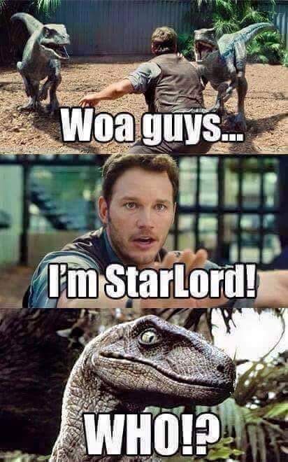 Esta escena puede compararse graciosamente con la de mundo Jurasico, donde Owen Grady (también interpretado por Chris Pratt) confía en que los velocirraptores que entrena lo reconocerán y no intentarán matarlo. Star-Lord obtuvo el estatus de celebridad después de sostener la Gema del Infinito frente a cientos de espectadores, pero antes, Peter pensaba más en sí mismo de lo que realmente era. Al menos obtuvo la fama y el reconocimiento que deseaba tras salvar la galaxia junto a sus compañeros.