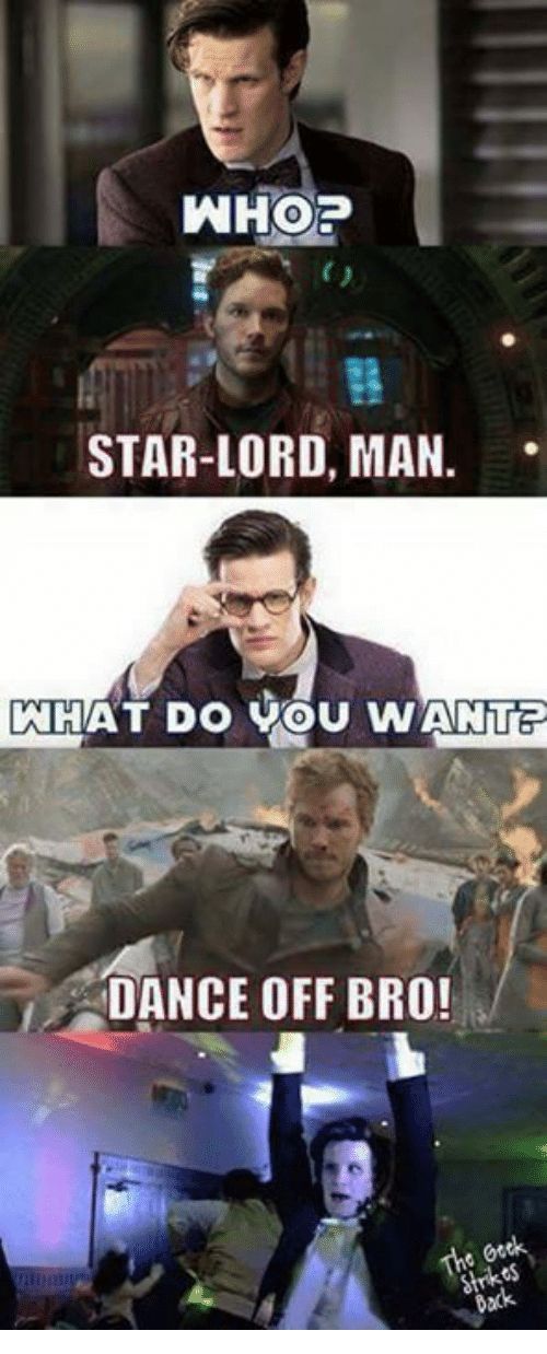 A diferencia de Doctor Who, Peter no solo baila en las bodas, sino que también baila para salvar el mundo. Como los fanáticos pueden recordar, distrajo a Ronan the Accuser de usar la piedra de poder para matar a todos, bailando y cantando “Ooh Child” de The Five Stairsteps.