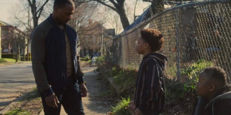 Cuando Falcon se encuentra con el niño en el vecindario de Isaiah, lo primero que dice es: “¡Es Black Falcon!”, A lo que Sam responde: “Solo es Falcon, niño”.