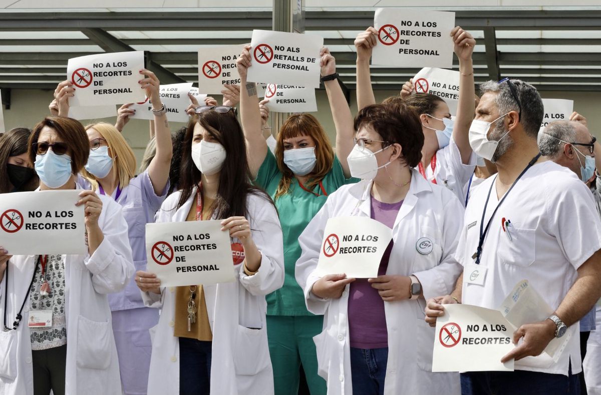 Durante la concentración a las puertas de La Fe, cerca de un centenar de trabajadores han agitado una pancarta con la frase “En defensa de los servicios públicos”, a la vez que han exigido la renovación de contrataciones y coreado lemas como “nos somos de usar y tirar”. “Lo justo sería haber renovado el 100% de los contratos covid porque la pandemia no se ha acabado, está ahí”, ha enfatizado Piqueras. En este departamento, ha dicho, se contrataron más de 900 personas de refuerzo y unos 400 no continuarán a partir del 31 de mayo. Entre los afectados hay todo tipo de categorías y profesiones: facultativos, celadores, especialistas en riesgos y prevención laboral, enfermeros, auxiliares o administrativos.