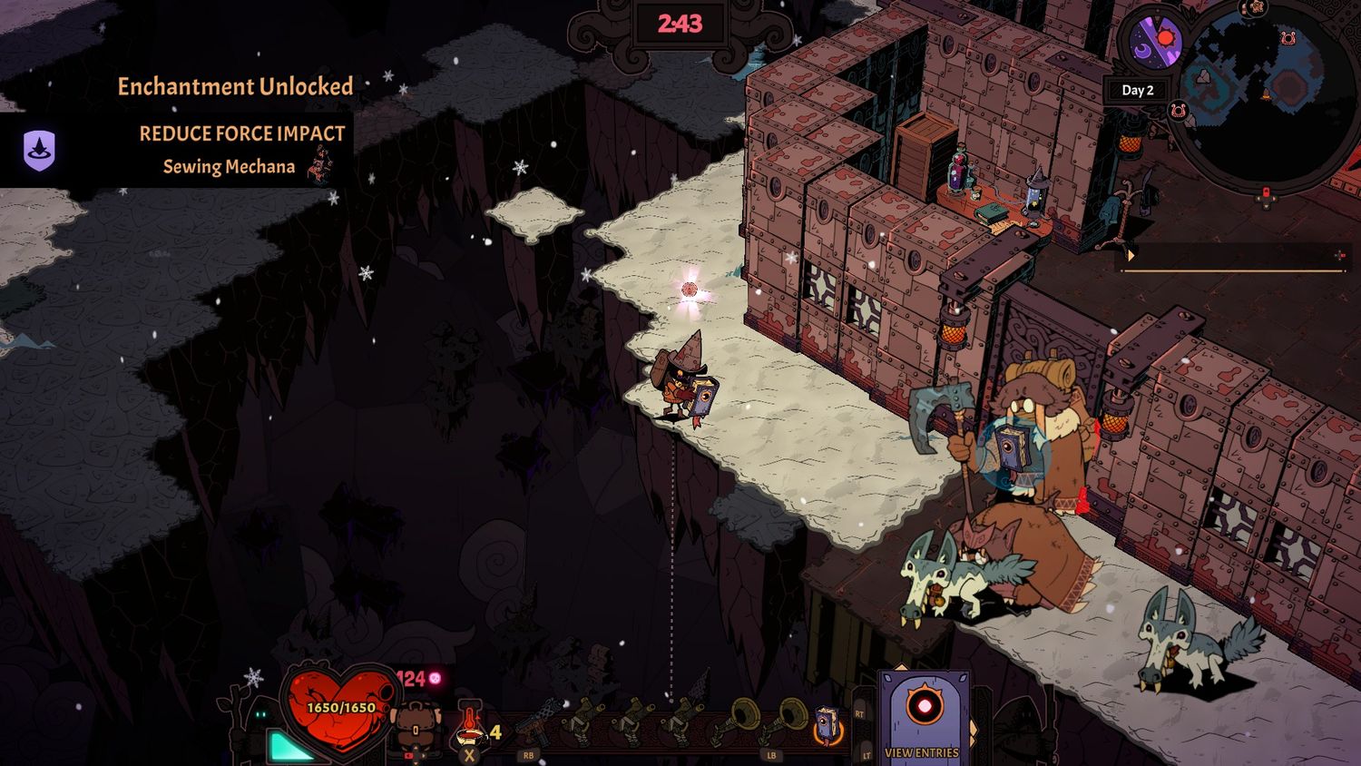 Mago con una pistola seguramente resonará más entre los jugadores que disfrutan del juego de limpieza, la oportunidad de organizar veinte cofres de almacenamiento diferentes una vez más. La base de la torre debería servir como un refugio seguro contra el peligro invasor del exterior, pero ese mundo exterior casi nunca es un desafío en primer lugar, y solo morimos una vez durante todo el juego. Los únicos peligros reales aquí residen en qué hacer con una mochila llena de setas cuando la caja de setas está llena. Mago con una pistola Le vendrían bien algunos tiroteos más inspirados (y magia, de hecho), pero es una distracción útil para cualquiera a quien le guste simplemente aspirar ingredientes y completar un árbol de investigación.