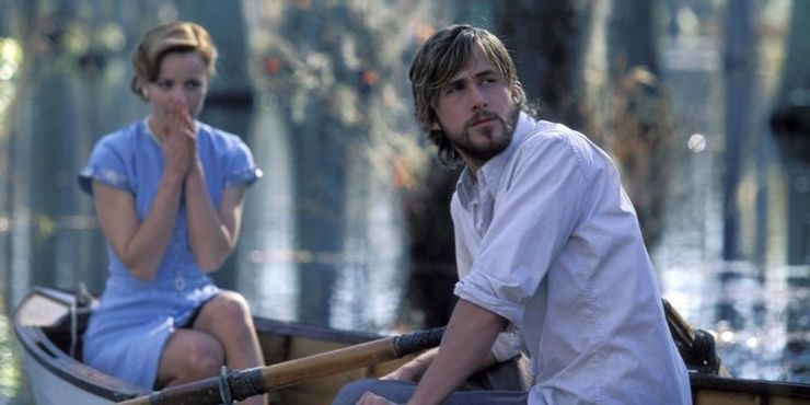 Adaptado de una novela romántica de Nicholas Sparks del mismo nombre y posiblemente la más popular de las películas que inspiró, El cuaderno sigue a Ryan Gosling y Rachel McAdams como Noah y Allie, dos jóvenes adultos enamorados en los años 40. La película cambia entre los años 40 y 2000, donde un anciano le cuenta la historia de amor a una anciana en un asilo de ancianos.