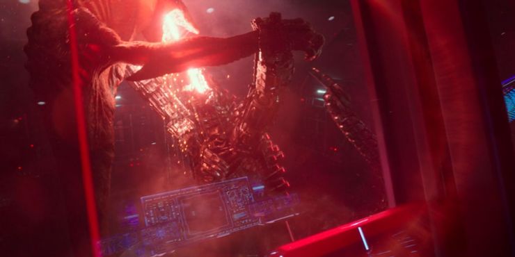 Durante la fase de prueba de Mechagodzilla, Ren Serizawa tuvo el control, aunque solo pudo alcanzar un cierto nivel de poder antes de que el mecha se apagara. No fue hasta después de que Simmons obtuvo una muestra de la fuente de energía de la Tierra Hueca de su hija, Maya Simmons, que él y Serizawa pudieron llevar a Mechagodzilla al 100% de potencia. Pero al hacerlo, Ghidorah tomó el control. Godzilla vs Kong no explica expresamente cómo se revivió la conciencia de Ghidorah, pero hay dos posibilidades. Primero, la capacidad de Ghidorah para regenerarse significa que el dragón nunca está realmente muerto, no si puede ser revivido de alguna manera usando tecnología como la fuente de energía de la Tierra Hueca. Titanes como Godzilla y Ghidorah se alimentan de radiación y energía, por lo que al tener la conciencia de Ghidorah conectada a Mechagodzilla cuando se utilizó la energía, la mente de Ghidorah podría haber revivido, o al menos una parte de ella.