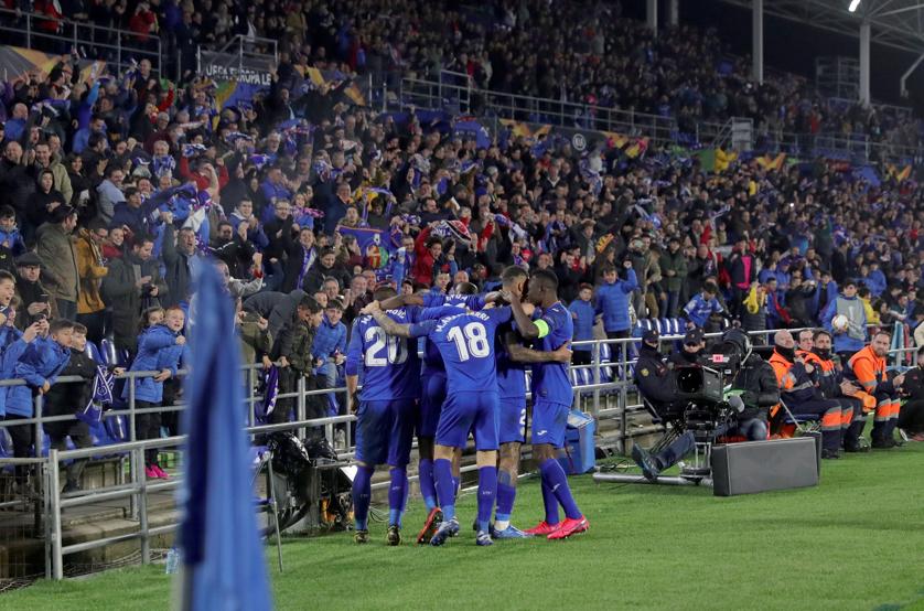 El delantero del Getafe Deyverson Silva fue alcanzado por un mechero lanzado desde la grada, donde están ubicados los hinchas del Ajax, cuando estaba celebrando el gol que había marcado en el minuto 36.