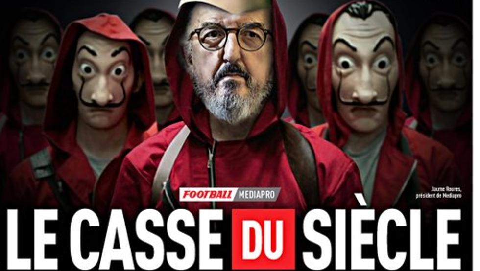 “El atraco del Siglo”. Así sale en portada el prestigioso diario deportivo francés L’Equipe en su edición de mañana sábado 12 de diciembre. El rotativo galo caricaturiza a Jaume Roures, presidente de Mediapro, como uno de los personajes de la famosa serie de televisión La Casa de Papel después de que su empresa y la Ligue 1 hayan roto definitivamente el contrato de retransmisión de fútbol francés que tenía firmado hasta 2024.