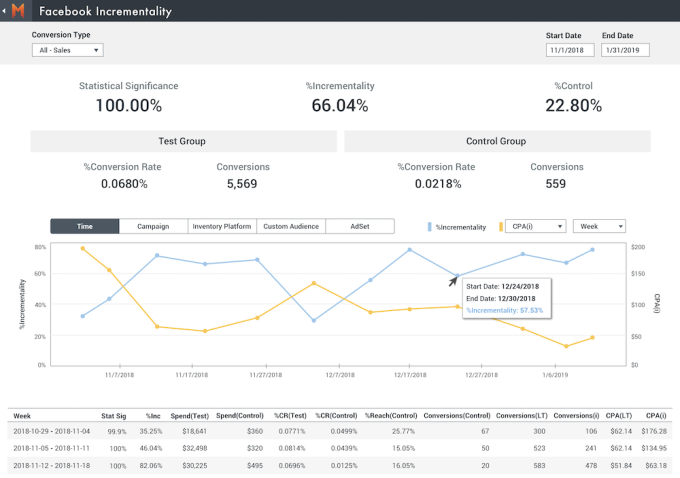 En su lugar, Measured emplea lo que denomina “experimentación de control y control en estado estable”. Testwuide lo describió como una forma sofisticada de prueba A / B que mide si un anuncio realmente proporcionará una mejora incremental en el comportamiento del consumidor. Dijo que este tipo de prueba es relativamente sencillo cuando se trata de analizar clientes existentes, pero es “realmente, muy difícil” para encontrar nuevos clientes.
