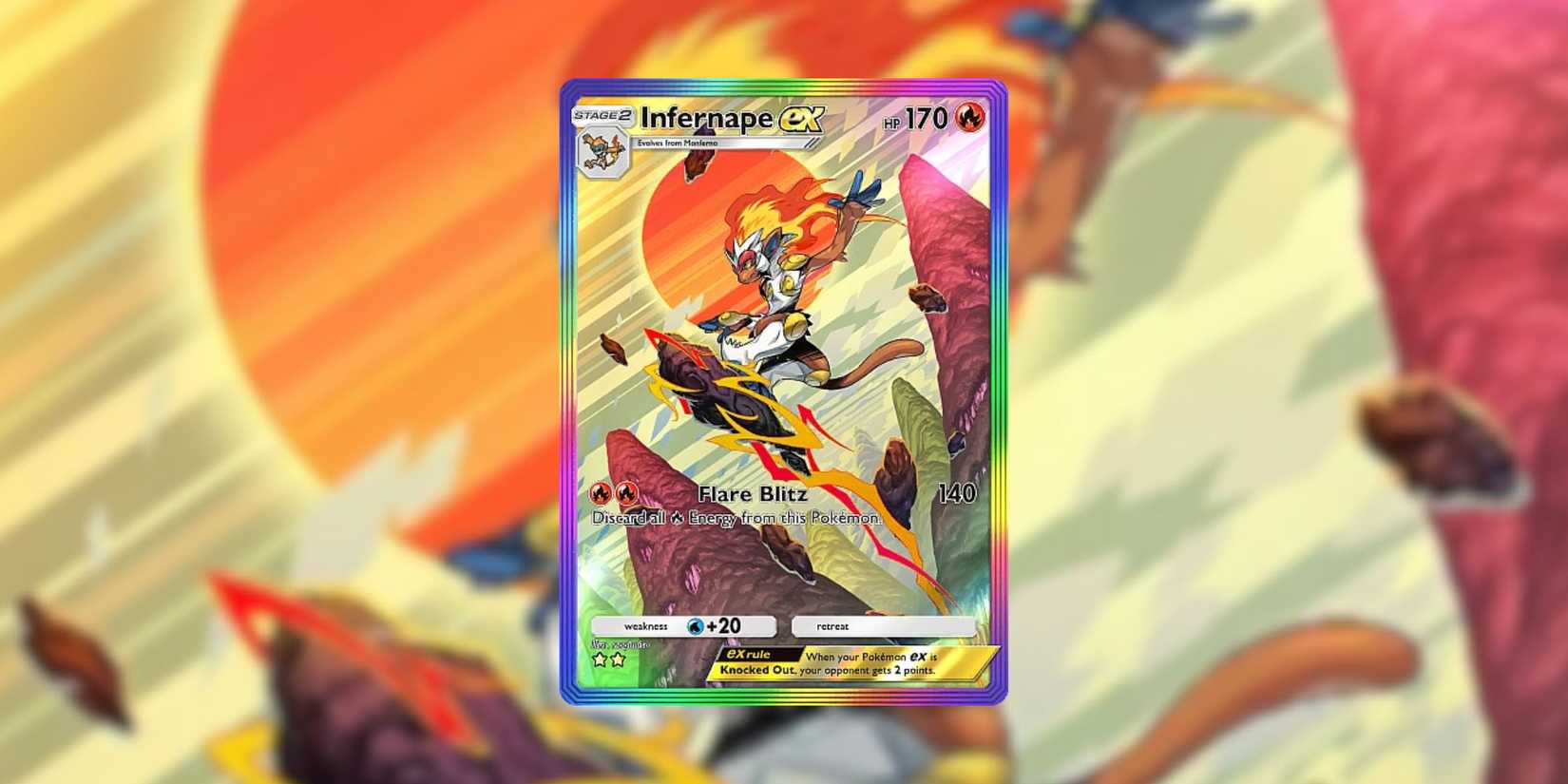 Infernape es una evolución de la etapa 2, pero no lleva mucho tiempo establecerse y tiene el potencial de causar un gran daño en el turno 3. Su único ataque, bombardeo de fuego, hace un gran daño de 140 por solo dos energía de fuego. Si bien toda la energía se descarta después del ataque, potencialmente puede eliminar a los equipos muy rápidamente. Sus etapas anteriores también pueden causar una cantidad decente de daño en sí mismos (por ejemplo, el ardiente golpe de Monferno causa 30 daños por una energía). En total, es una de las mejores cartas ex en Pokemon TCG Pocket de Space-Time Smackdown.