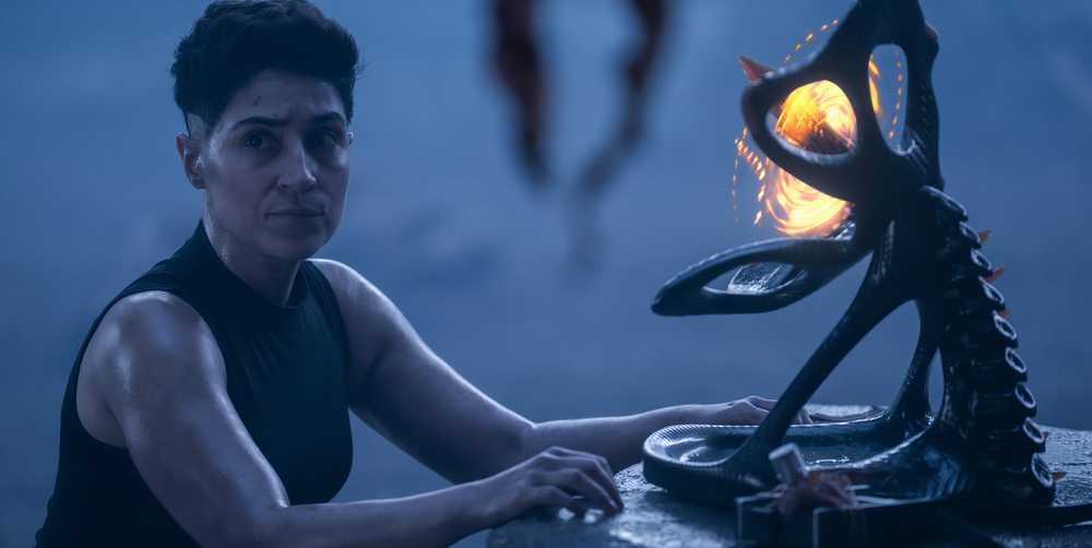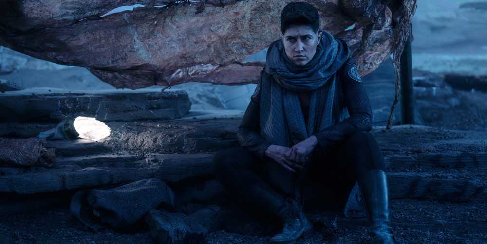 Melissa Navia bromea sobre cómo las misiones de la teniente Erica Ortegas lejos de la empresa de naves espaciales están maldecidas. “Es algo así como si hubiera un destino de playa que estaba anhelando, eso no es lo que está obteniendo”. Navia se ríe. “Lo interesante de este, por supuesto, es que ha enviado porque saben que puede hacer la misión. Ella es la que puede volar dentro y fuera de él, y luego lo que termina sucediendo es que nada se planea, por lo que es solo esta gran historia que se expande sobre la ansiedad, el estrés, el TEPT que ha estado sintiendo durante toda la temporada. ¿Y cómo lo supera?