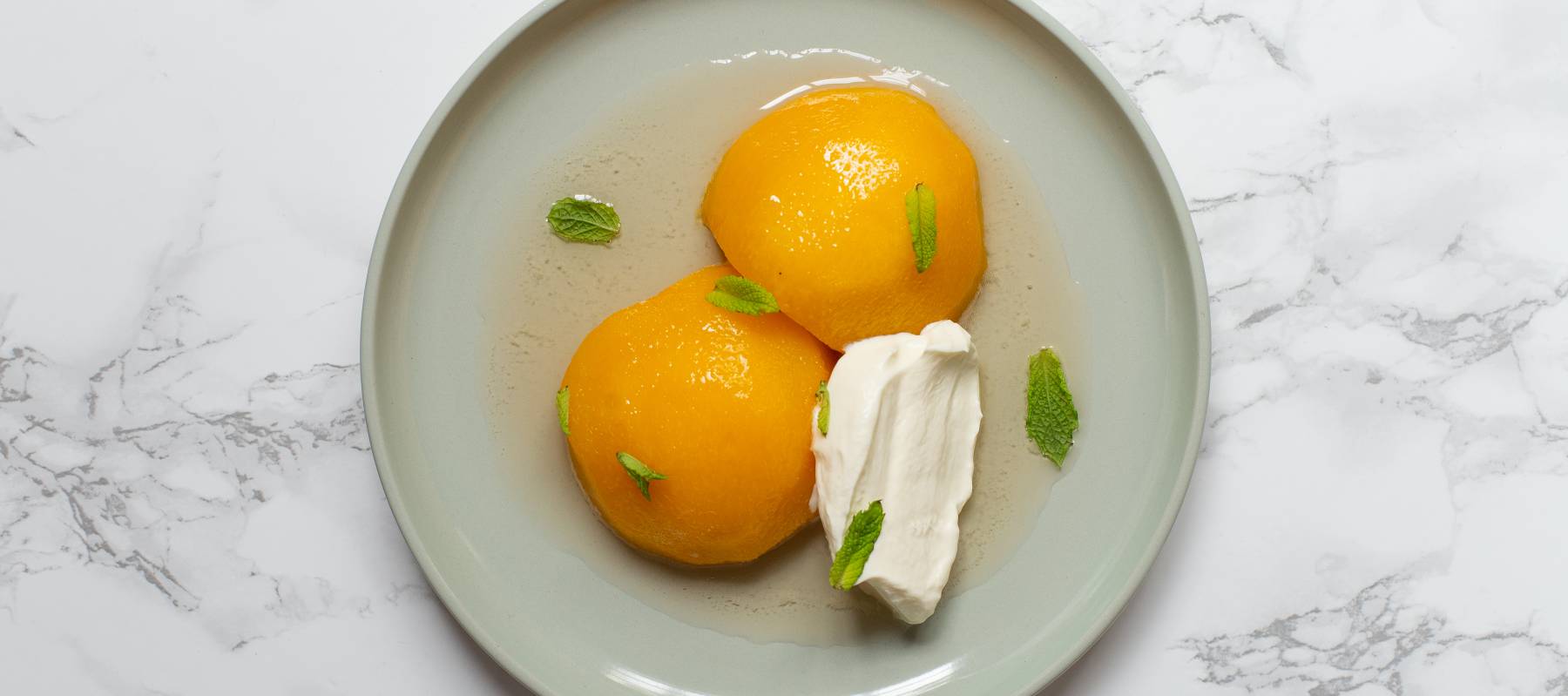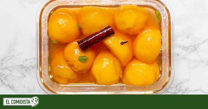 Retirar los melocotones y reducir el almíbar restante hasta que solo quede la mitad.