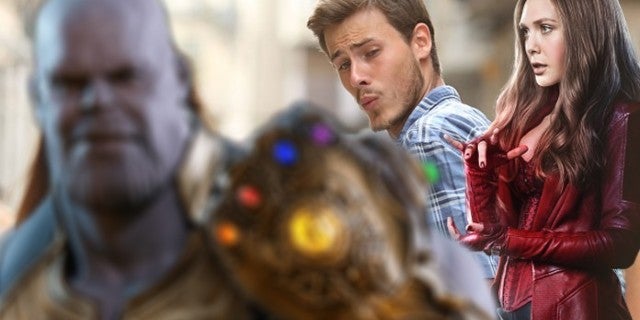 La imagen de arriba coloca a la Bruja Escarlata en el lugar de la novia despechada y al Titán Loco en el papel de la niña que pasa. De alguna manera, el meme funciona por completo, e Internet está de acuerdo porque tiene más de 4,000 me gusta al momento de escribir. La expresión indignada de la chica en la cara superior corresponde sorprendentemente bien con el tipo de ira justa que Wanda tenía en ese campo de batalla. Thanos es ajeno y sigue sus planes también.