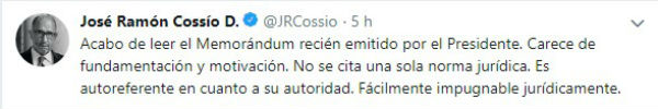 Cossío expuso en su cuenta de Twitter que el mencionado memorándum emitido por el Ejecutivo federal  “carece de fundamentación y motivación“.