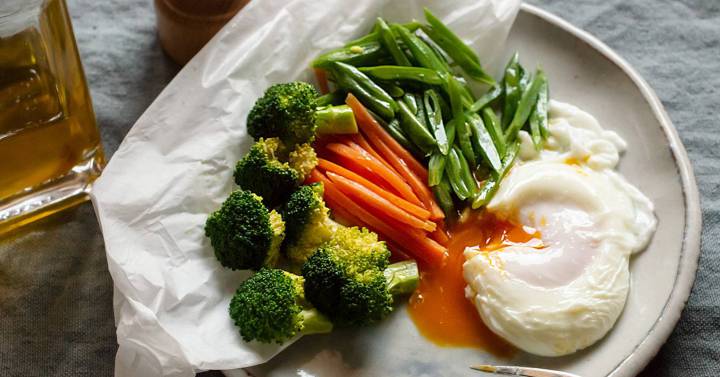 HUEVOS ESCALFADOS CON VERDURAS EN PAPILLOTE