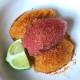 Un segundo de pescado ultrafácil que también puede servir como aperitivo, consistente en una especie de tataki de atún con otra especie de hummus/salsa/crema de almendras.