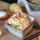 La clásica ensaladilla rusa también tiene su versión oriental, con jamón en lugar de atún o bonito, su clásica mayonesa dulce y trozos de pepino para refrescar el conjunto. El resultado es adictivo.