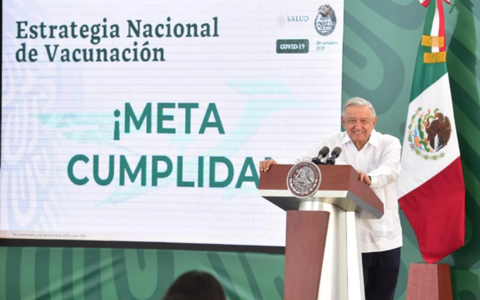 Ya se cumplió con el compromiso de aplicar cuando menos una dosis a todas las mujeres y los hombres mayores de 18 años, anunció el presidente Andrés Manuel López Obrador.