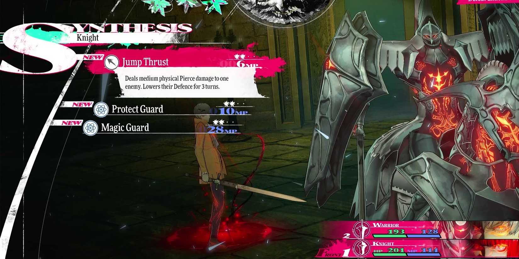 Tal destreza es lo que la convierte en una de las más duras. Metáfora: ReFantasia personajes. Sin embargo, se debe evaluar cuidadosamente si se debe utilizar una habilidad de Síntesis. Esto se debe a que no solo consume un ícono de turno para ambos miembros del grupo involucrado, sino que también consume el costo de MP para usar un movimiento como Jump Thrust. Por lo tanto, solo debes asegurarte de usar ese movimiento si no planeas que el segundo miembro de tu equipo use ninguna habilidad de Arquetipo en particular durante ese turno.