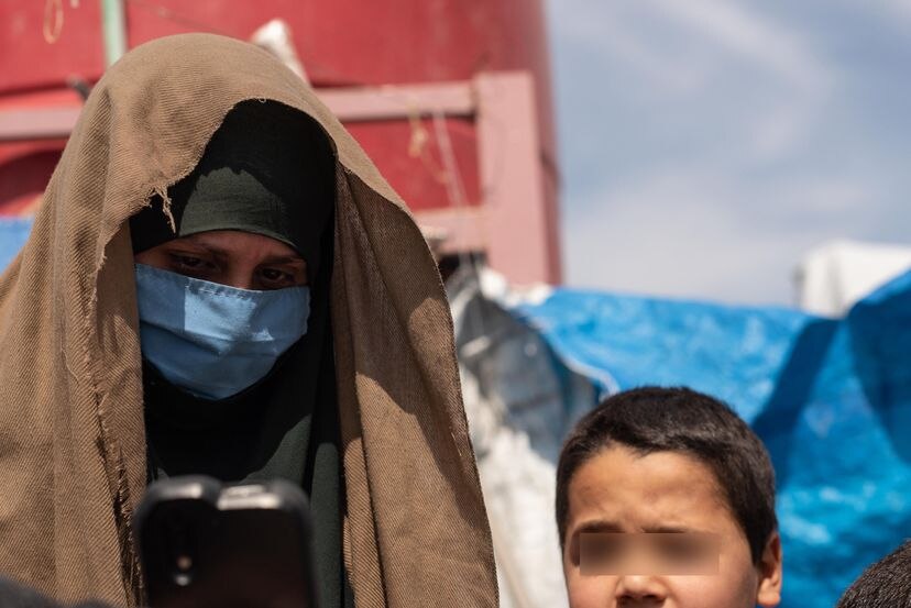 Widad no puede evitar menear la cabeza al ritmo del videoclip Con altura, en el que cinco bailarinas embutidas en ceñidas ropas se contonean junto a la cantante española Rosalía. Al otro lado de la pantalla, y a ras de suelo en una carpa del campo de Al Roj para familias de los yihadistas del Estado Islámico (ISIS, por sus siglas en inglés), en el noreste de Siria, seis mujeres occidentales se sientan con las piernas cruzadas alrededor del televisor cuyo mando controla Widad, alemana de 34 años. Escuchar música o bailar estaba prohibido en el califato. Labios pintados, orejas atiborradas de pendientes, pelos teñidos de rojo o alisados y vaqueros o elegantes zapatos contrastan con el océano de abayas que les rodean en las otras 800 tiendas que se cuentan en estas instalaciones custodiadas por milicias kurdo-árabes aliadas de la coalición internacional. “El pasado 8 de marzo, día de la mujer, decidimos quitarnos el velo”, cuenta Widad, madre de cuatro pequeños engendrados por dos maridos yihadistas.