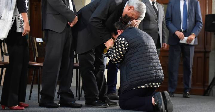 El evento había empezado hacía 23 minutos. En la tarima, Karla Quintana se preparaba para tomar la palabra. La comisionada nacional de búsqueda, figura clave para las familias de personas desaparecidas en México, tenía en sus manos la lista de estados que ya cuentan con comisiones de búsqueda propias, importantes, según ella, para ubicar todas y cada una de las fosas clandestinas escondidas en el subsuelo del país. Pero antes de empezar a hablar, una mujer se acercó al templete. Allá estaba el presidente, Andrés Manuel López Obrador, la secretaria de Gobernación, Olga Sánchez Cordero, y el subsecretario de Derechos Humanos, Alejandro Encinas, además de Quintana. La mujer se plantó delante de López Obrador, se hincó y empezó a sollozar. En la tarima, nadie sabía dónde meterse.