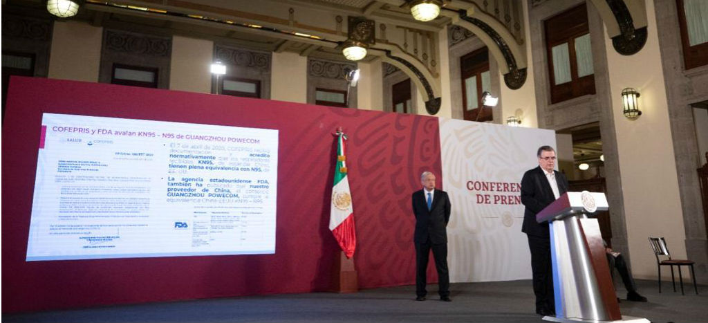 El canciller expresó que el 7 de abril, la Comisión Federal para la Protección contra Riesgos Sanitarios (Cofepris) recibió documentación y acreditó normativamente que los respiradores recibidos KN95, de estándar chino, tienen plena equivalencia con N95, de Estados Unidos.
