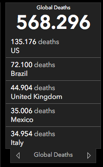 Según el conteo de casos que lleva el portal de datos de la Universidad Johns Hopkins, con esta cifra México se ubica en cuarto lugar a nivel mundial por número de fallecimientos, solo superado por Estados Unidos, Brasil y Reino Unido.