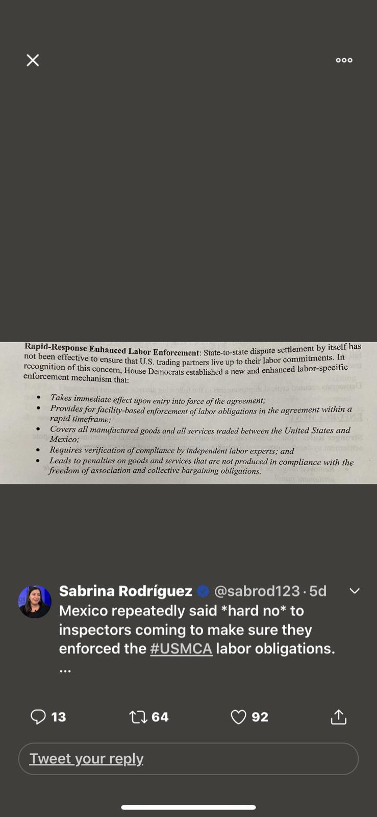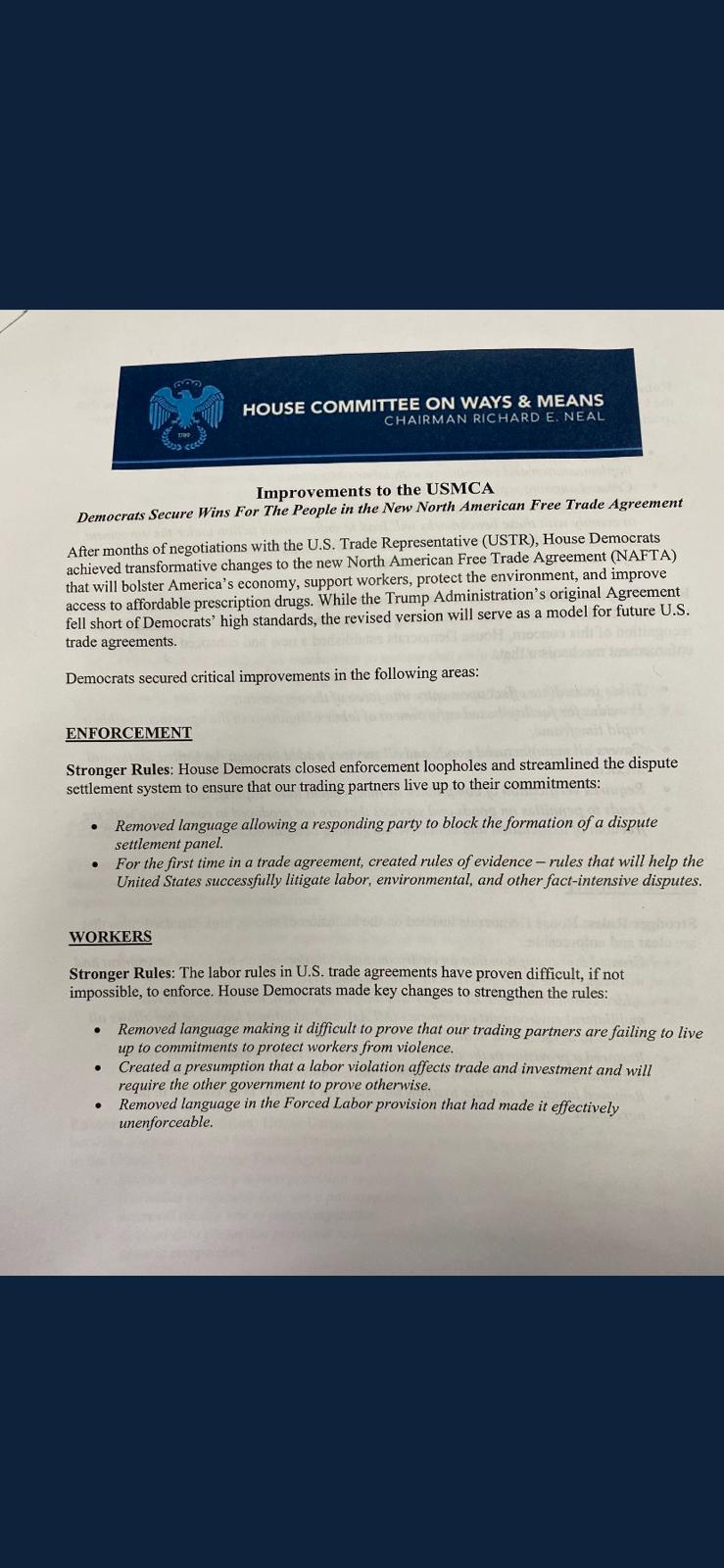 El periodista Jesús Esquivel afirmó que los demócratas compartieron un documento al gobierno mexicano el pasado 10 de diciembre, antes de que el T-MEC fuera ratificado, en el que consideran establecer agregados laborales.
