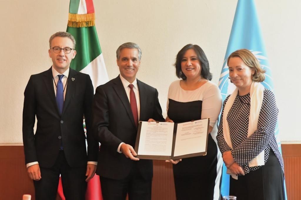 Para fortalecer la cooperación internacional y la asistencia técnica, hoy firmamos un Memorándum de Entendimiento con la Oficina de Enlace y Partenariado en México de la Oficina de Naciones Unidas contra la Droga y el Delito (@UNODC_MX): Dra.@Irma_Sandoval, Titular de la @SFP_mx. pic.twitter.com/7U9CxJzfVT