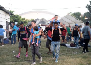 Una familia hondureña, en el campamento de la caravana en Guatemala este miércoles. En vídeo, Aspectos de los centros de detención al sur de México.