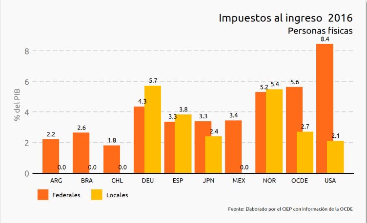 Dentro de los principales impuestos que se recaudan en los países miembros de la Organización para la Cooperación y el Desarrollo Económico (OCDE), México tiene un mayor rezago en la recaudación de gobiernos locales, señaló el Centro de Investigación Económica y Presupuestaria (CIEP).