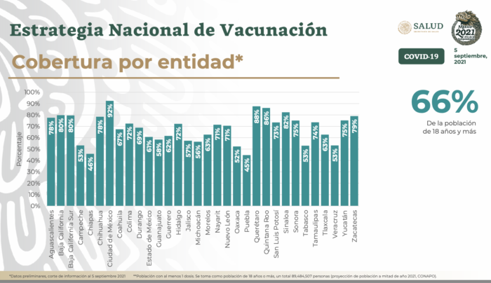 En total, México ha recibido 76 millones 029 mil 855 dosis de vacunas envasadas de Pfizer-BioNTech, AstraZeneca, Sinovac, Centro Nacional de Investigación de Epidemiología y Microbiología Gamaleya, CanSino Biologics, Johnson & Johnson y Moderna.