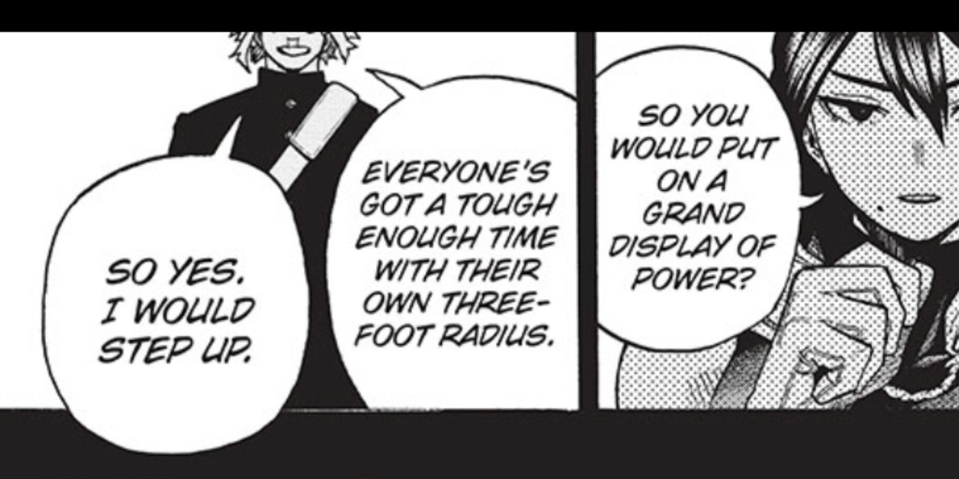 En el capítulo #398 de mi héroe academia de Kohei Horikoshi, un flashback de All Might muestra al entonces peculiar Toshinori Yagi tratando de convencer a su futura maestra Nana para que le permita convertirse en un héroe. En su argumento, Yagi le informa al héroe que su familia ha sido asesinada. De este modo, Como no tiene una familia que proteger, puede convertirse en un héroe.. Como lo expresó Nana: “hacer una gran demostración de poder“para aquellos que están ocupados protegiendo a sus seres queridos dentro de su “propio radio de tres pies“.