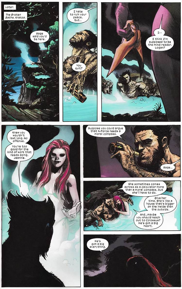 No siento ninguna necesidad de hacer algún tipo de reversión de la escena de Ben de ese número de X-FORCE después de que haya pasado tanto tiempo. La cantidad de personas para las que eso es relevante es pequeña y escasa. No es algo que mantenga despiertos a la mayoría de los lectores. Más bien, simplemente avanzaremos hacia el futuro.