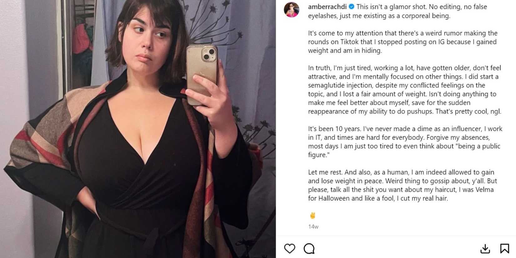 - Amber está soltera y disipó los rumores de que su pausa en las redes sociales se debió a que había recuperado peso.