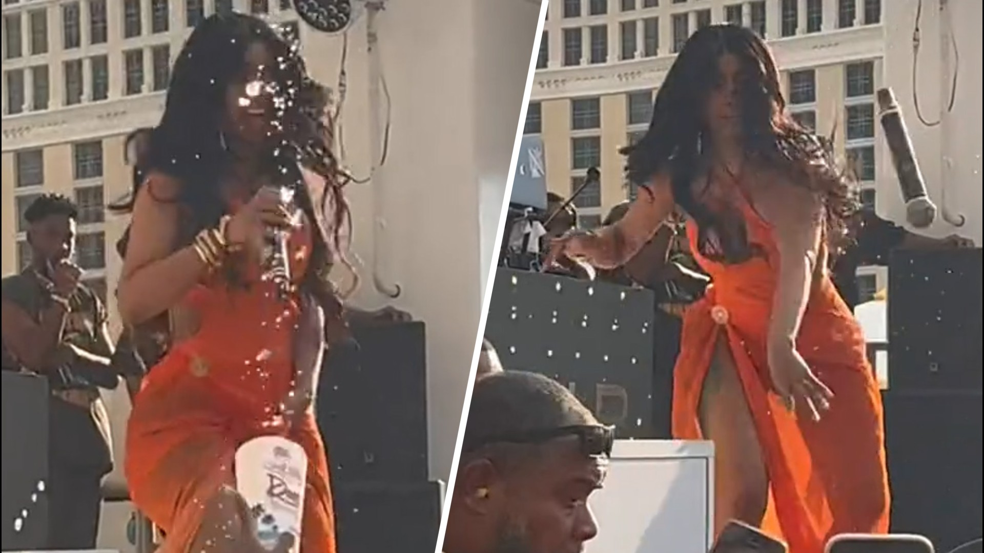Más adelante, otro espectador le arrojó el contenido de su copa cuando Cardi B estaba en medio de un tema, lo que pareció irritarla, y reaccionó tirando su micrófono con fuerza hacia el público, mientras la canción seguía sonando.