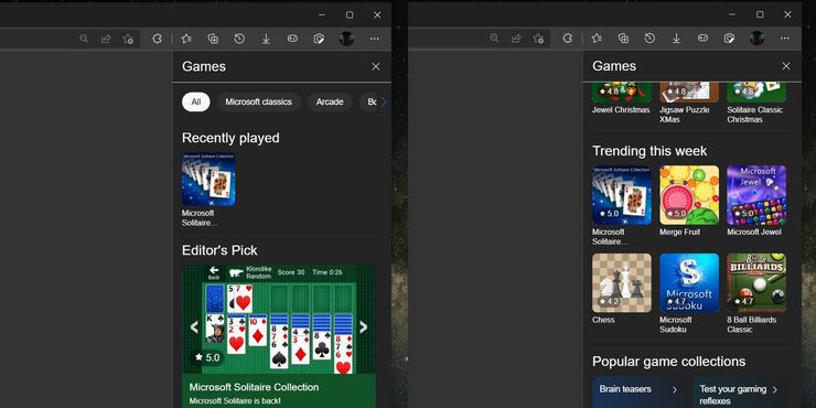 Según una publicación de Reddit la semana pasada, Microsoft agregó un nuevo panel de juegos a la última versión de Edge Canary. La función se puede activar mediante un interruptor dentro del ‘Apariencia‘, y una vez activado, agrega un atajo de juego a la barra de direcciones. Al hacer clic en el botón, se muestra un panel emergente que aparentemente extrae contenido de MSN Games. La función no está disponible para todos los usuarios de Edge Canary, lo que significa que la compañía probablemente la esté usando para pruebas a / b, o ya la haya retirado.