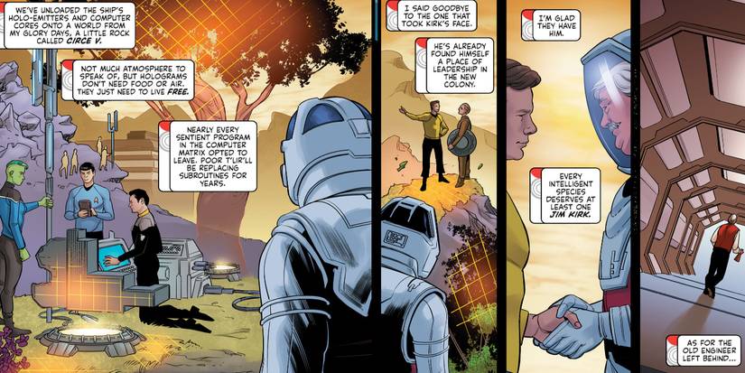 El momento entra en Star Trek: Omega #1que concluye el evento de la ‘Guerra Lore’ en el que el hermano malvado de Data corrompió la realidad. Después de sus experiencias en la realidad temporal de la tradición, Scotty ofrece oficialmente su renuncia a la Flota Estelar Y finalmente regresa a la Tierra, reuniéndose con su viejo amigo Nyota Uhura.