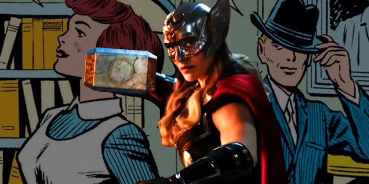 Fuera del MCU thor franquicia, la primera aparición de Jane en un cómic ocurrió en 1962 con Viaje al misterio #84 como enfermera del Dr. Donald Blake. Jane se encontró atrapada en un triángulo amoroso con Blake y Thor, sin darse cuenta de que eran el mismo hombre: Blake era el anfitrión mortal de Thor. Más tarde, Thor llevó a Jane a Asgard, donde se le concedió la inmortalidad. Aún así, Odin más tarde la despojó de esos poderes creyendo que no era lo suficientemente valiente como para aprovecharlos y la envió de regreso a la Tierra sin recordar su tiempo en Asgard. Ella reaparece después de años en Thor: amor y truenopero esta vez es digna de empuñar a Mjolnir.