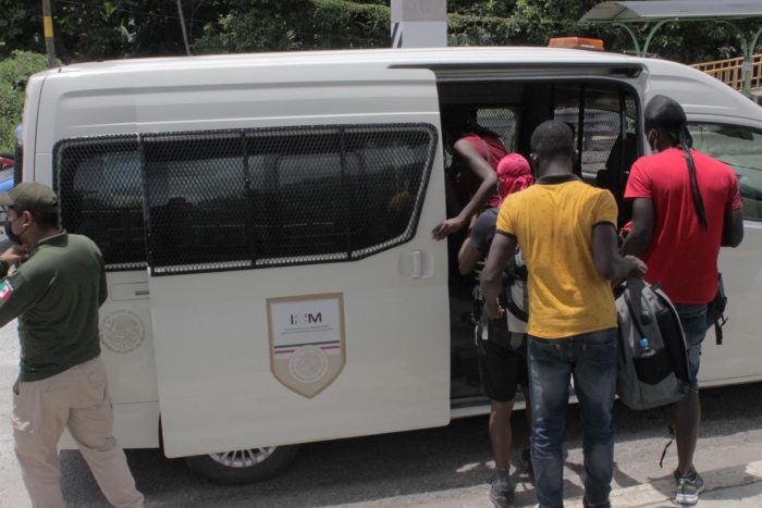 Mientras que elementos del Instituto Nacional de Migración (INM) apoyan para llevar a los migrantes detenidos a la estación migratoria y determinar su situación jurídica o trasladarlos a la frontera de El Carmen, San Marcos, para su deportación.