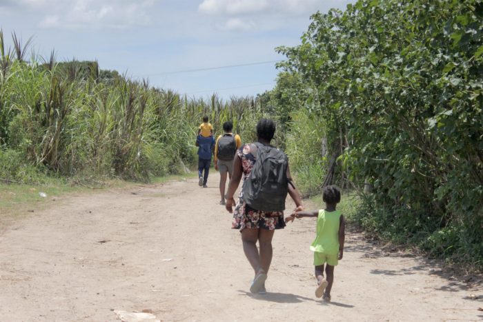 Las familias caribeñas ingresan por el río Suchiate por el municipio de Frontera Hidalgo y caminan a la comunidad de Guadalupe Victoria, Ejido Zaragoza, El Sacrificio y el Libramiento Sur hasta llegar al Ejido Lagartero ubicado a unos 10 minutos de la cabecera municipal de Tapachula.