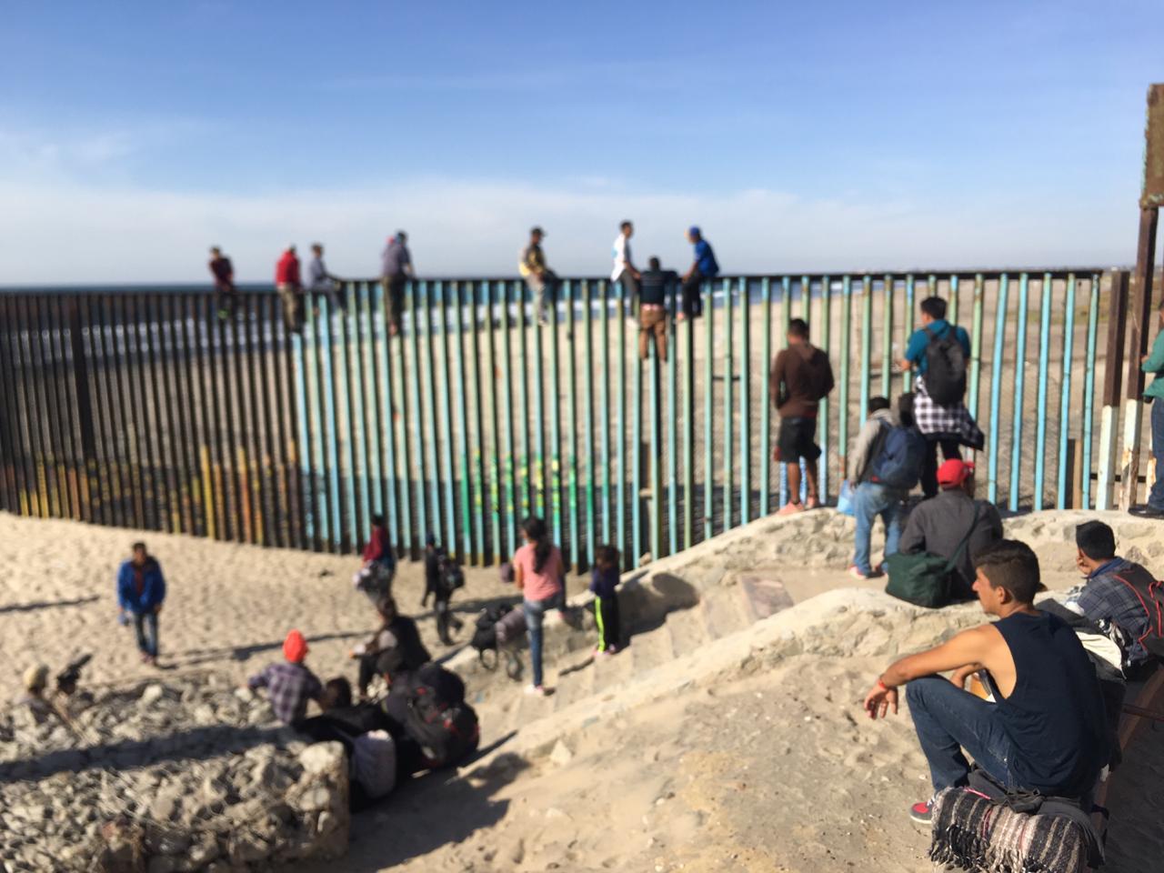 A pesar de la presencia de los agentes, una veintena de integrantes de la caravana migrante escaló los postes de metal que hacen la función de muro divisorio en el parque de la amistad. Después de recorrer miles de kilómetros, el segundo grupo de más de 300 migrantes dice que se siente mucho más cerca de cumplir su sueño.
