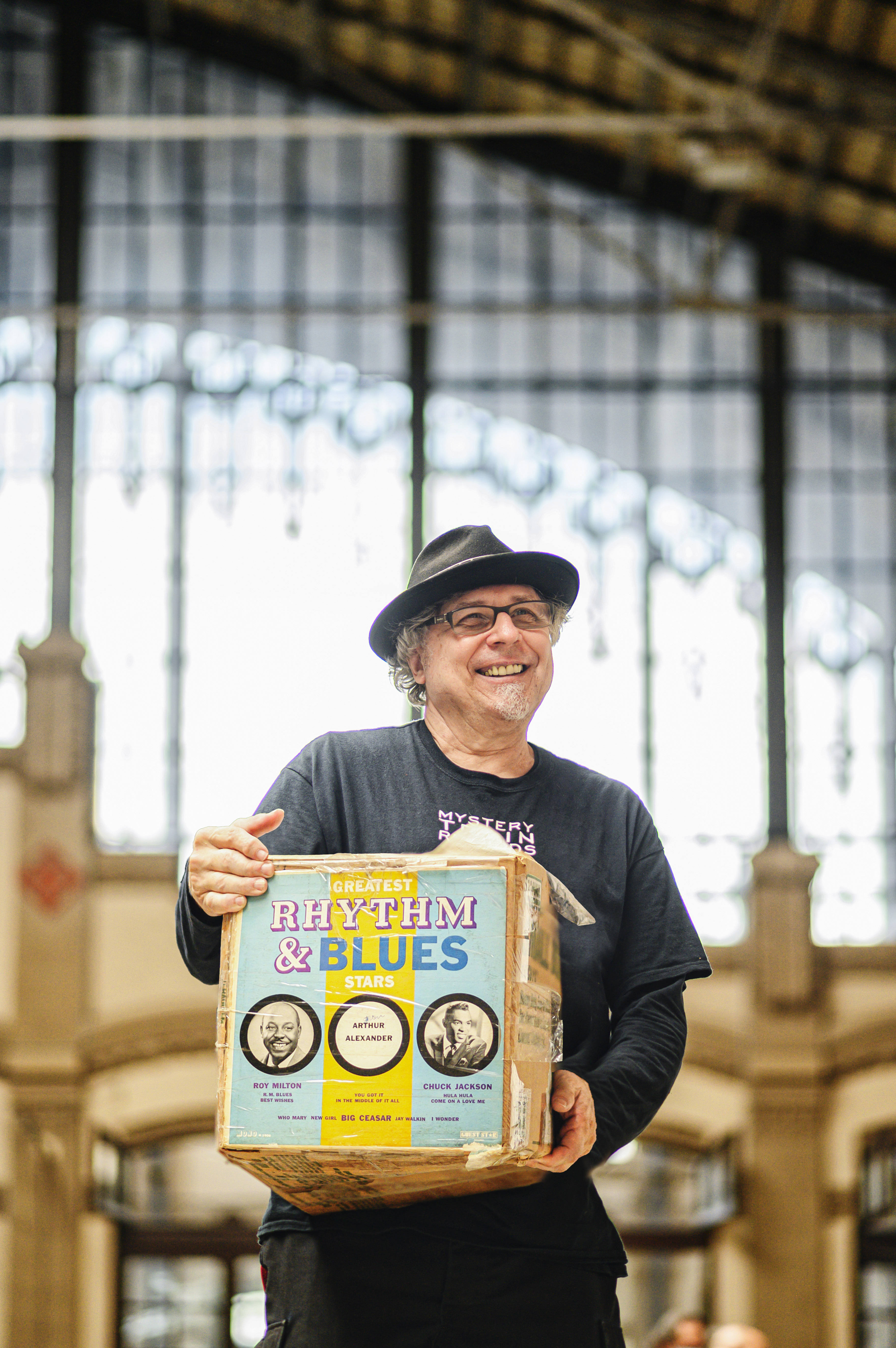 Nos recibe en la sala anexa de la Estació del Nord unas horas antes de que abra la Feria Internacional del Disco de Barcelona, en la que espera recaudar “alrededor de 10.000 dólares”, más que suficiente para cubrir sus gastos y los de su equipo de ayudantes y no volver a casa con los bolsillos vacíos. Su parada, bautizada como The Velvet Underground Records, suele ser la más concurrida de la feria. Hay en ella un par de (modestas) piezas de museo, como la copia de la edición original del primer álbum de Buffalo Springfield que espera vender por 350 euros, pero lo que predomina es “la buena música en el mejor de los formatos posibles, el vinilo, a un precio justo”.