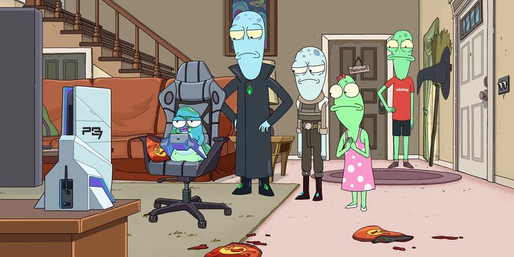 Mike McMahan: Sabes, son difíciles de comparar. Realmente extraño trabajar en Rick y Morty, extraño trabajar con Dan, obviamente trabajar con Justin me rascó bastante en Solar Opposites. Pero comencé con Rick y Morty, comencé allí como asistente de escritor, Harmon me dio mi primer guión y Justin estaba interesado en eso y luego trabajar con ellos en Rick y Morty es lo que nos llevó a Justin y a mí a querer hacer una historia más loca. , espectáculo más estúpido que siguió nuestra identidad y nuestra felicidad más que la cuidadosa elaboración de Rick y Morty.