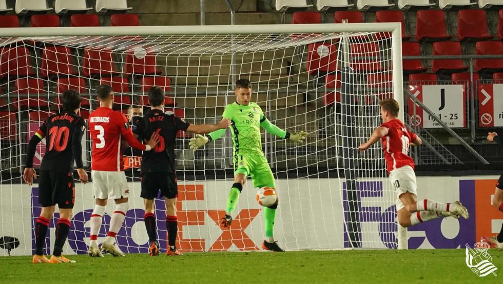 La Real no defendió colectivamente con eficacia y eso lo notó su portero, que tuvo que hacer un milagro para conseguir salvar un punto en el AFAS Stadium. Los neerlandeses botaron un córner al segundo palo mientras la Real defendía en una zona mixta. Varios marcaban al hombre mientras otros esperaban estáticos. Esa pasividad la aprovechó De