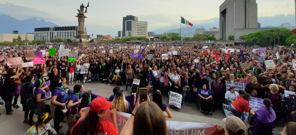 Miles de mujeres de todas las edades tomaron las principales calles del centro de Monterrey en Nuevo León para exigir un alto a los feminicidios y la violencia de género.